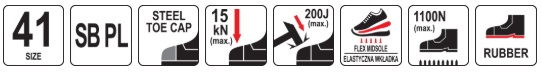 Work shoes with a sporty design YT-80622 from the PUBS SB P series are designed for the maximum comfort of many hours of work in dry conditions. The airy upper lined with a sponge material on the inside ensures air circulation and a pleasant fit to the upper part of the foot. A special insole with a comfortable foam perfectly supports the toes, midfoot and heel, at its thickest point it is 10 mm. The rubber sole, as well as the other insole, anti-puncture, made of Kevlar, are flexible and, unlike shoes with a traditional PU sole and a steel insert, they do not restrict metatarsal bends. The protection of the foot, and more specifically the toes, is complemented by an impact-resistant steel toe cap.
