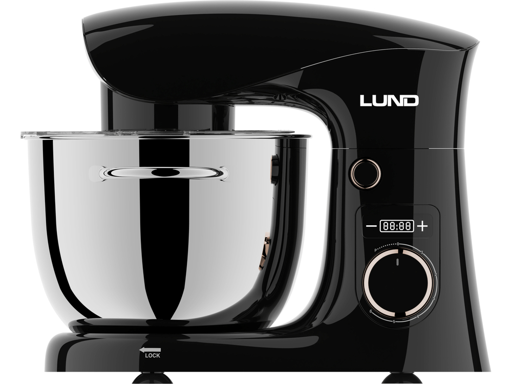 The LUND 67813 planetary mixer is a versatile kitchen appliance designed for convenient and precise preparation of a variety of dishes. The high power of the ACC motor 1500W and solid worm gear transmission ensure effective operation even with dense and heavy doughs. The planetary mixing system guarantees thorough blending of ingredients in the entire bowl, without the need for manual adjustments. The 10-speed adjustment and Pulse mode allow full control over the mixing, beating, and kneading process. The spacious stainless steel bowl and practical cover enhance comfort and cleanliness during work. An additional advantage is the timer function, which allows setting the device's operating time.