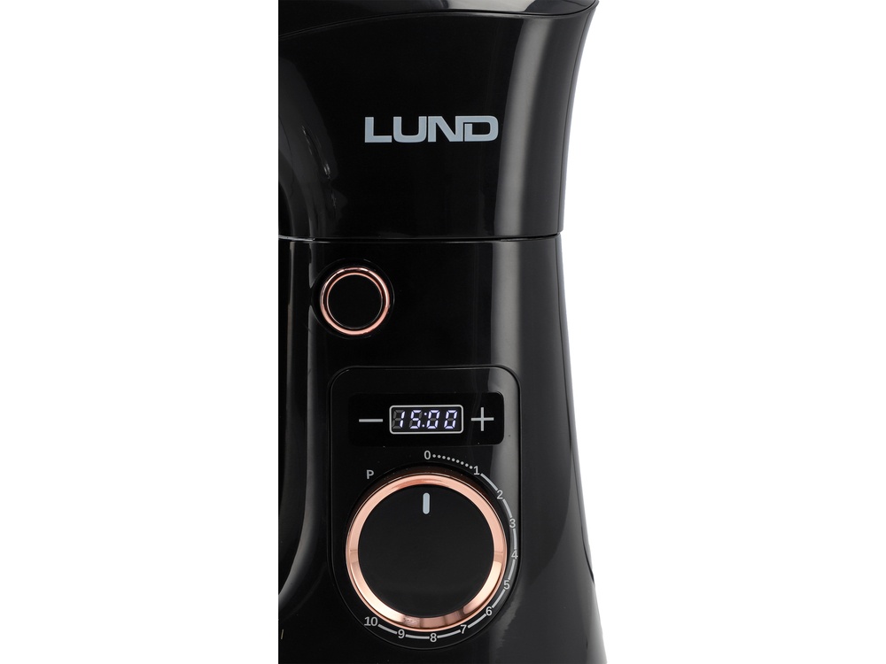 Control panel with knob and LED display - combines classic convenience with modern control. The rotary knob allows smooth speed adjustment of the mixer, and the + / - buttons allow setting the working time up to 30 minutes, with automatic countdown on the screen. The mixer automatically starts and stops mixing according to the settings, and the pause function at speed "0" makes it easier to add ingredients during operation.