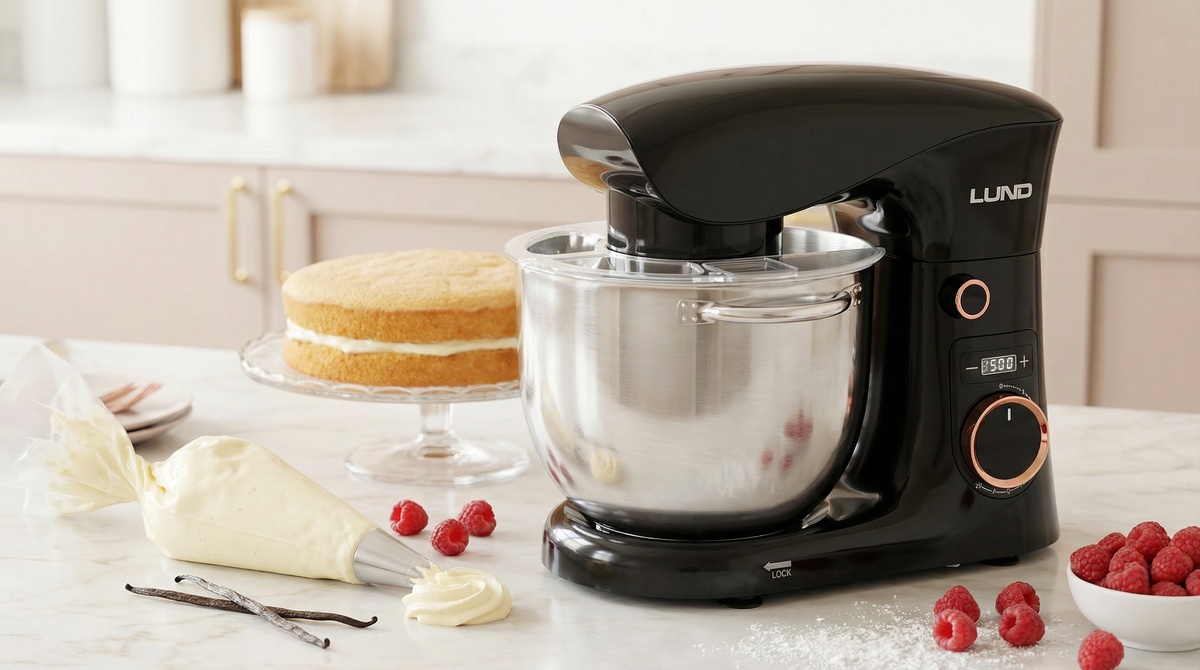 *possibility to purchase the 5-liter bowl LUND 67817. Having two or more bowls in one planetary mixer increases work convenience and flexibility - allows preparing one dish while the other bowl is already in use for another task, such as beating cream or mixing dough. Additionally, it reduces the need for washing between stages, saving time and facilitating kitchen work organization. This practical solution is especially useful for large portions or diverse baking.