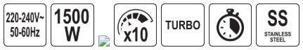 Rated power: 1500 W (AC 220–240 V ~ 50–60 Hz) - ensures high mixing power even with dense doughs. Stable operation and CE certification guarantee safety and reliability