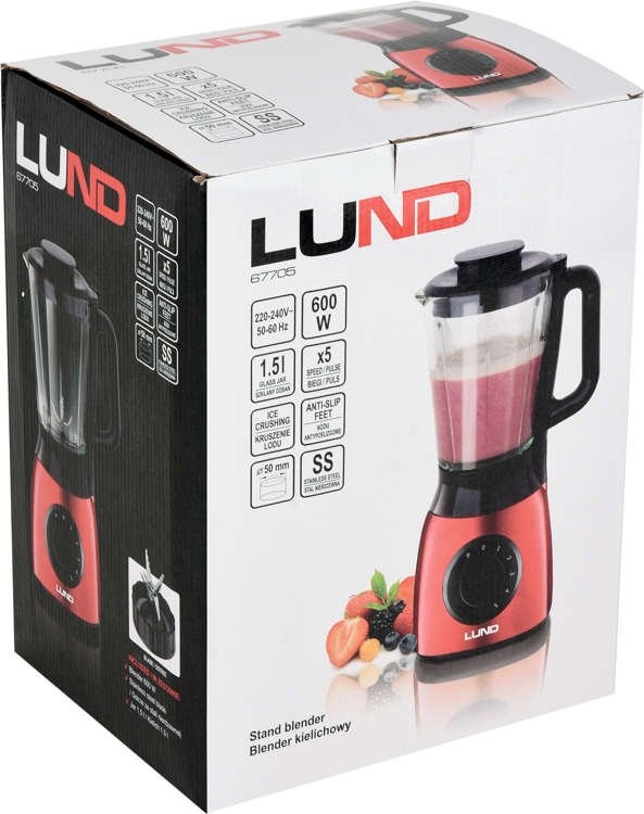 A large, stable and extremely powerful (600W) blender with a glass cup will handle harder ingredients as well as ice crushing. A thick goblet with protrusions on the side walls facilitate the process of mixing the ingredients and thus the quality of blending. An additional advantage is the 6-spoke blade and the maximum number of revolutions per minute (up to 22,000 rpm)
