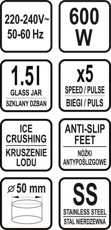 Chalice - designed for even better blend, blending of ingredients and to increase durability. A thick glass goblet with protrusions on the side walls facilitate the mixing process and thus improve the quality of blending.
