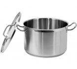 Professional medium pot with lid, measuring 28x18 cm and with a capacity of 11.1 liters. The YATO Professional Kitchen Equipment pot is designed for professional use in the catering industry. It is perfect for preparing all types of dishes. It is made of high-quality 21/0 stainless steel, developed specifically for use in catering. The most important advantage of pots made of this type of steel is that heat conduction is up to 30% greater than standard pots made of 304 steel. They are also characterized by increased resistance to mechanical damage and the effects of organic acids and detergents. Therefore, they are dishwasher safe and resistant to intensive scrubbing. Importantly, pots made of 21/0 steel do not contain harmful manganese and nickel. The special design of the capsule bottom distributes heat evenly across the entire bottom surface, increasing heat utilization and cooking efficiency. This directly translates into quality and comfort for the cook. This solution also reduces the risk of food burning. The ferromagnetic insert in the bottom allows YATO pots to be used on all types of stoves, including: - electric - induction - gas - ceramic. The pot's side walls and lid are made of thick steel, maintaining heat longer than standard 304 stainless steel cookware. YATO pots feature exceptionally solid, stay-cool handles. This ensures safety and long-lasting durability. Designed for professional use in the catering industry. Perfect for cooking all types of dishes.