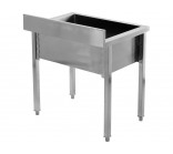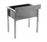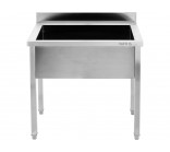 This work table with a sink (basin) is a functional work station designed for central installation in commercial kitchens, pastry shops, and catering facilities. The design combines a spacious worktop with a deep wash chamber, enabling efficient preparation of ingredients and ongoing cleaning in one place.