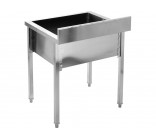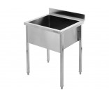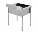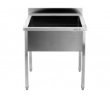This work table with a sink (basin) is a functional work station designed for central installation in commercial kitchens, pastry shops, and catering facilities. The design combines a spacious worktop with a deep wash chamber, enabling efficient preparation of ingredients and ongoing cleaning in one place.