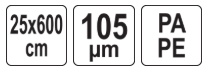 Vacuum packaging film 25x600 cm. Package contains 1 roll.