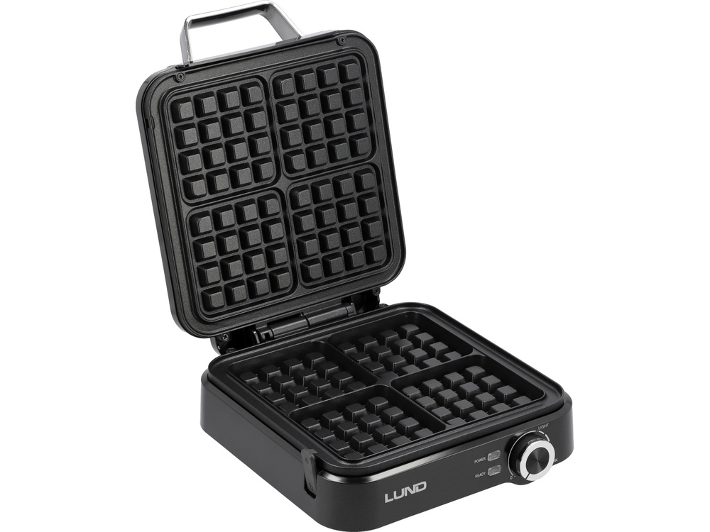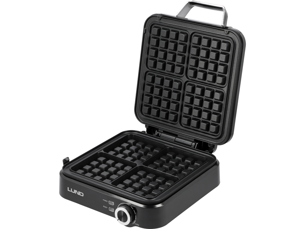Waffle maker with large plates and power allowing you to prepare up to four delicious waffles in a short time. Even heat distribution ensures that the waffles are perfectly baked inside and golden and crispy on all sides. Served with your favorite toppings, they are a great idea for breakfast or dessert.