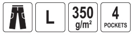 Sweatpants with a high content of elastane and a pleasant lining -like for a satin bedding. As much as 7% of elastane in the composition of the material gives pants a stretch similar to the level of leggings or Lycra sportswear. Four fastened and roomy pockets. The front pockets can be pulled out, then thanks to the loops from the flexible tape, they can be used as assembly pockets. The main material is cotton with polyester and high elastane content. Cotton as a natural material is very well tolerated by the body and is pleasant to the skin. The polyester strengthens the resistance to tearing, and the elastane improves the extension. Basic data Material: 41% cotton, 52% polyester, 7% elastane/spandex weight: 350 g/m² Organization of work on the sides Two capacious pockets with a zip fastener from the front two pockets with a zipper fastener. They can be pulled out, then thanks to the flexible loopes sewn in, additional information can be used as assembly pockets, a wide belt with a string and with rubber tubes on the knees, additional flexible material increasing resistance to abrasions 7 cm wide cuffs at the bottom of the pants. meet the requirements of Regulation (EU) 2016/425 for work clothing and category.