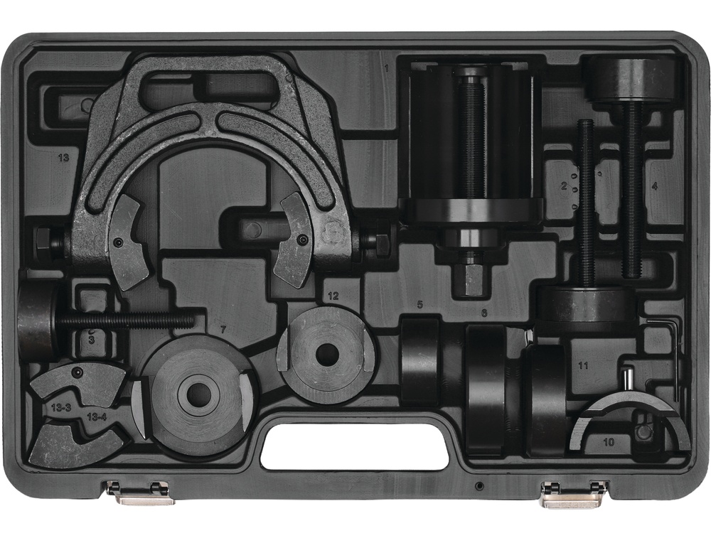 Katalogas > Įrankiai automobilio remontui (kėbulo, važiuoklės,variklio, stabdžių, užlūžusių žvakių, įpurškimo, alyvos keitimo, stiklo keitimo, kompresiometrai, spyruoklių suspaudėjai, vožtuvų nuspaudėjai, raktai ratams, švirkštai, skystam tepalui > Presavimo įrankiai, presavimo komplektai: Sailentblokų, guminių įvorių, guolių presavimas