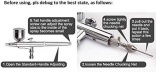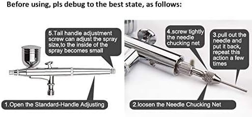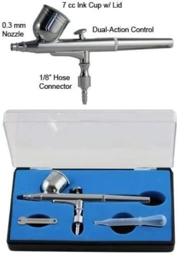 Dia: 0.3mm With 0.3 mm nozzle connection with double action, versatile: a rographic pen l ger with and gun allows the user to end the amount of air and liquid lib r e with a simple movement of the fingers. Provides super atomization and incredible control.