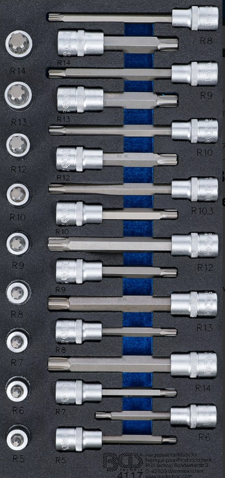 9 bit sockets, length 100 mm, 12.5 mm (1/2") drive, Spline (for RIBE) M5 - M6 - M7 - M8 - M9 - M10 - M12 - M13 - M14