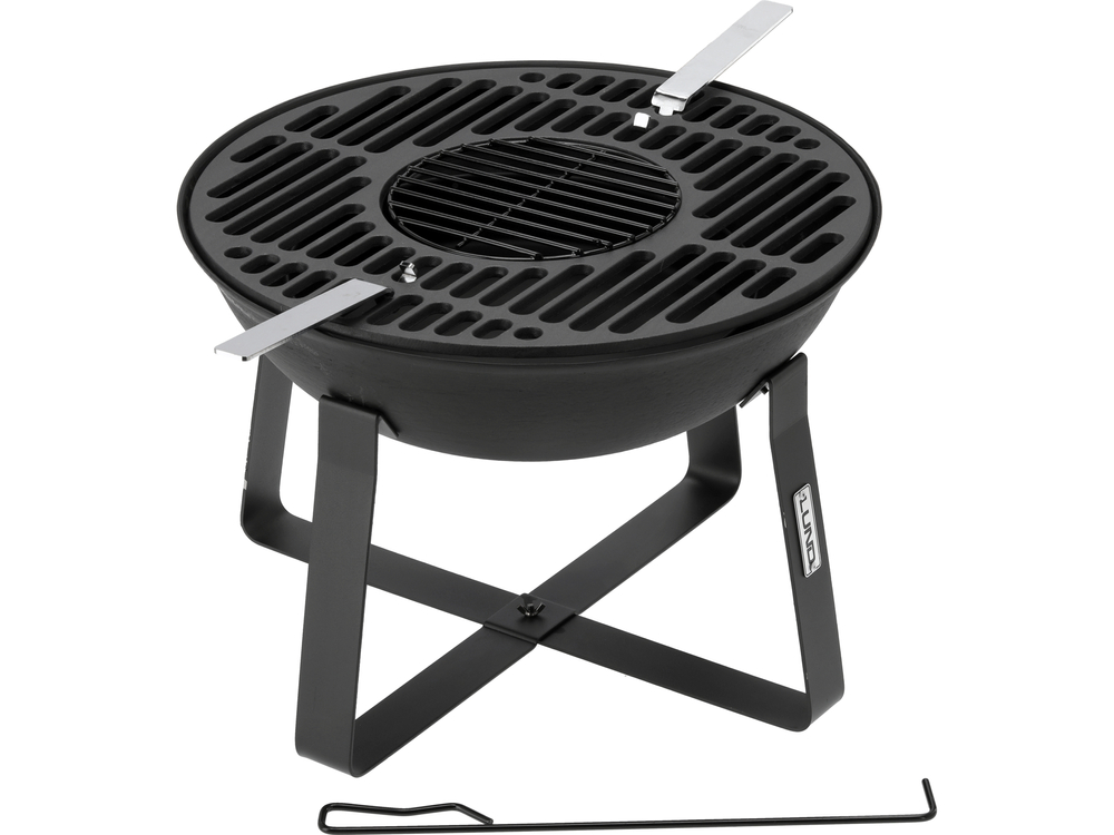 The cast iron garden fire pit with grilling function is a versatile 2 in 1 solution, combining the possibility of preparing delicious dishes outdoors with the comfort of safely igniting a fire. The 50 cm diameter allows you to comfortably arrange portions for several people at the same time, while the height of 36 cm makes it easier to add fuel and control the embers without bending over. The set also includes a poker, so you can start using it right away.