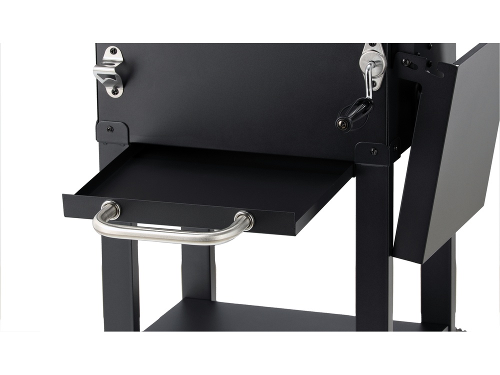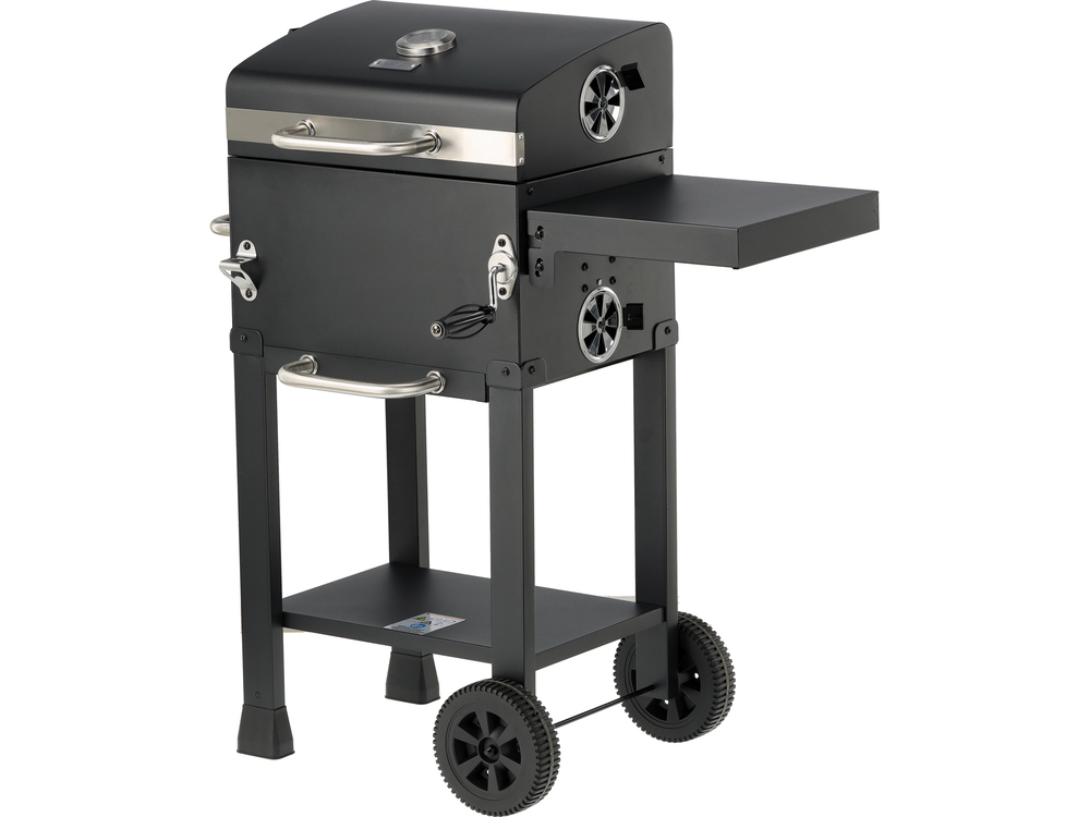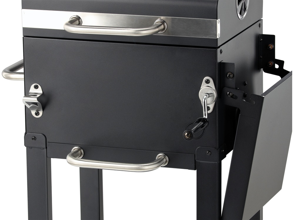 Practical shelves and handles - a folding side shelf serves as a worktop, and the lower shelf can hold charcoal, dishes, or grill accessories. Steel handles allow you to conveniently hang tongs or a spatula and operate the grill.