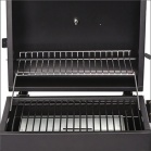 Durable materials and stable construction - the body made of powder-coated steel, steel firebox, and grate ensure resistance to high temperatures and long lifespan. Two stable legs and two large wheels guarantee secure placement and easy movement of the grill.