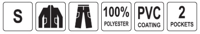 Polyester coated with PVC is a waterproof and windproof material. Excess heat escapes from under the material through ventilation slots on the back and openings under the arms.