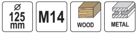 with an M14 spindle thread and a 125 mm disc diameter.