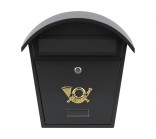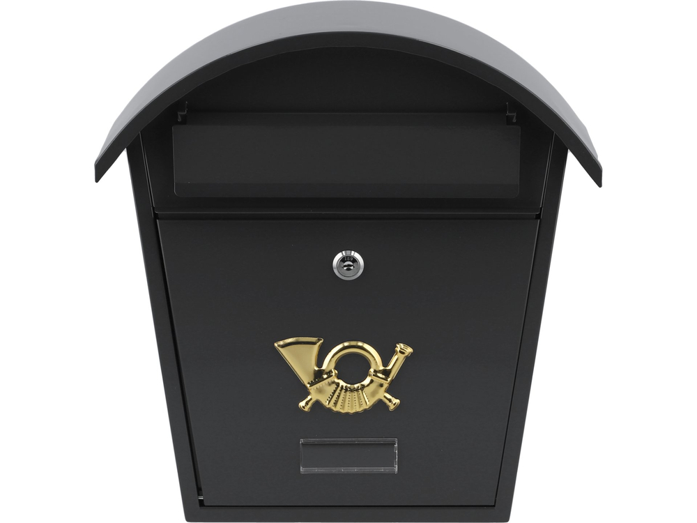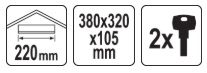 List box 380x320x105mm. Made of 0.6mm thick steel sheet, galvanized in gray. The inbox has a backward hole with a protective lid. The front page has a panel made of plastic from the possibility of placing an identification plaque with an address or surname. The front door is closed to the lock. The set includes 2 keys. The back page has mounting holes. Net weight 2.4kg 2 keys