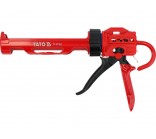 The bearing-mounted thick mass extruder is a professional tool that ensures precise application of adhesives, silicones, or sealants. Thanks to its solid aluminum construction and the use of up to 13 bearings, the piston moves smoothly, minimizing effort during work and increasing the precision of mass dosing.