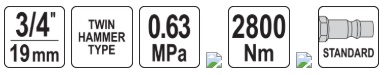 Pneumatic wrench designed for intensive use in industrial conditions, mechanical workshops, and car services. The Twin Hammer impact mechanism provides optimal balance between impact force and tool durability, allowing for quick loosening and tightening of high torque screws.