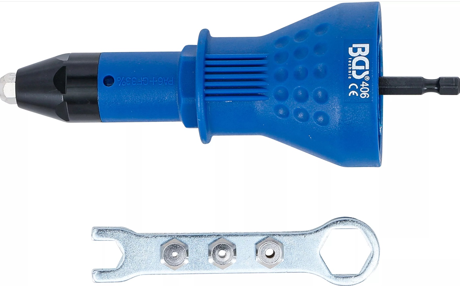 works with standard electric drills (reversible, min. torque 15 Nm)