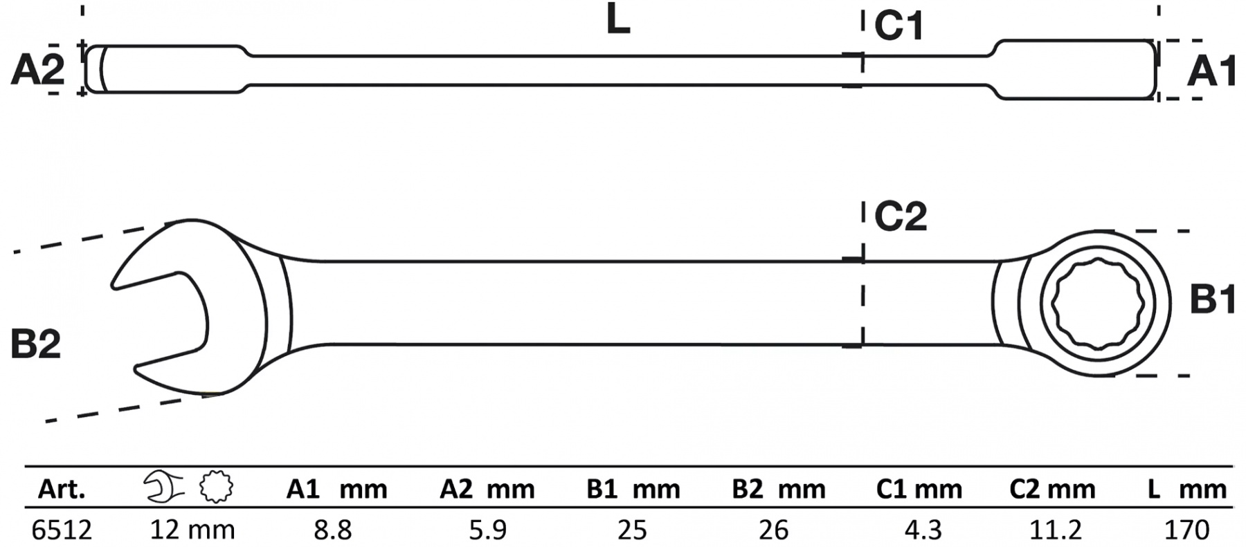 Raktas kombinuotas terkšlinis | 12 mm (6512)