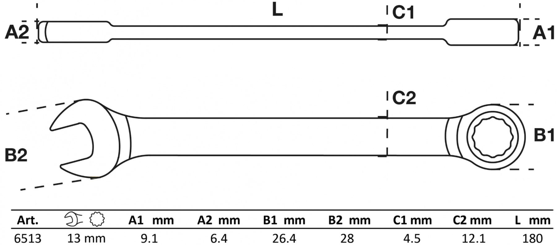 Raktas kombinuotas terkšlinis | 13 mm (6513)