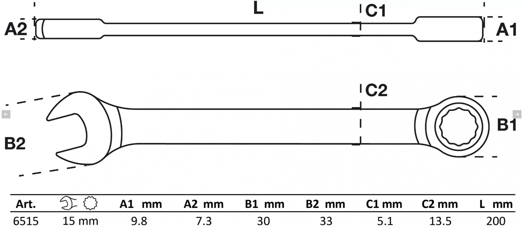 Raktas kombinuotas terkšlinis | 15 mm (6515)