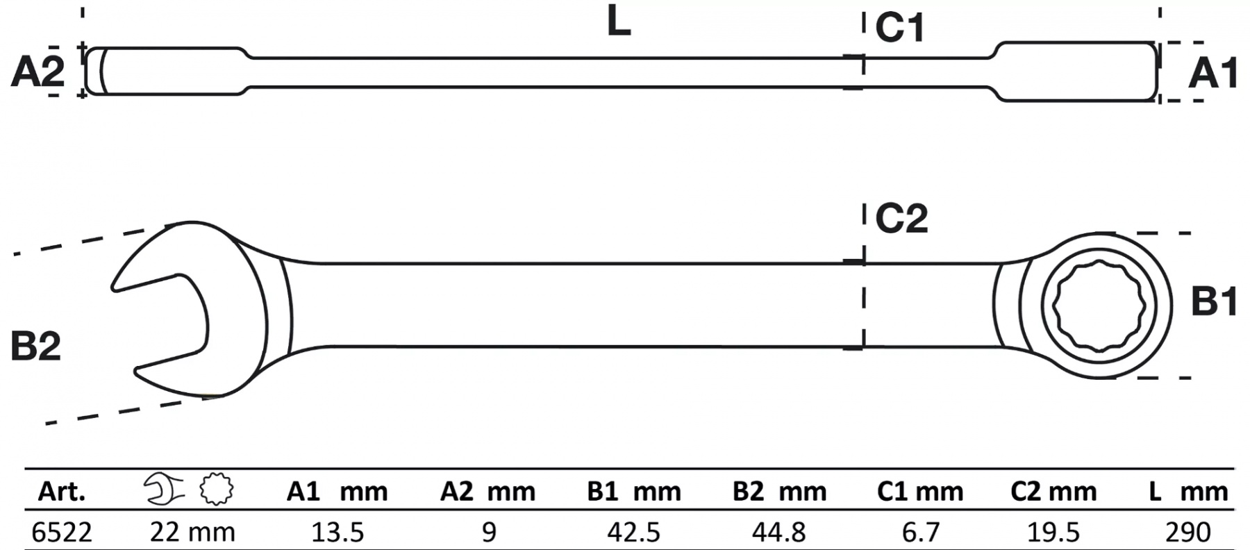 Raktas kombinuotas terkšlinis | 22 mm (6522)