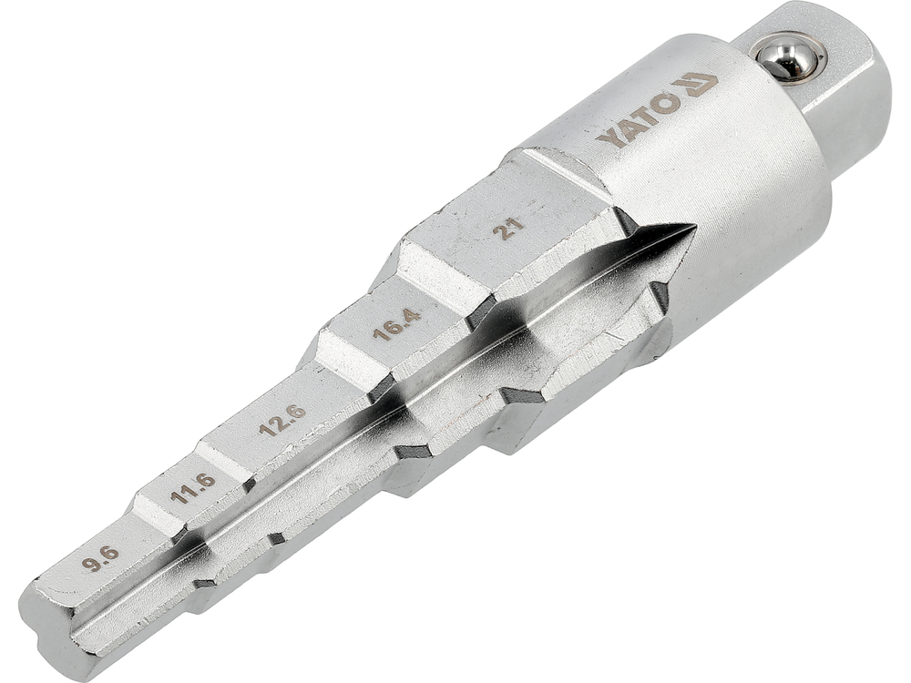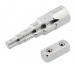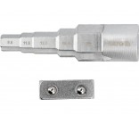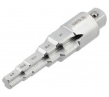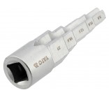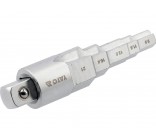 Graduated key with a 1/2" drive designed for installation work on heating fittings and threaded connections. Made of chrome-vanadium steel (CrV), it ensures high resistance to torsional loads and wear during frequent use. The graduated construction allows for handling multiple diameters with one tool, and the notches on both sides enable secure fitting in screws with protrusions.