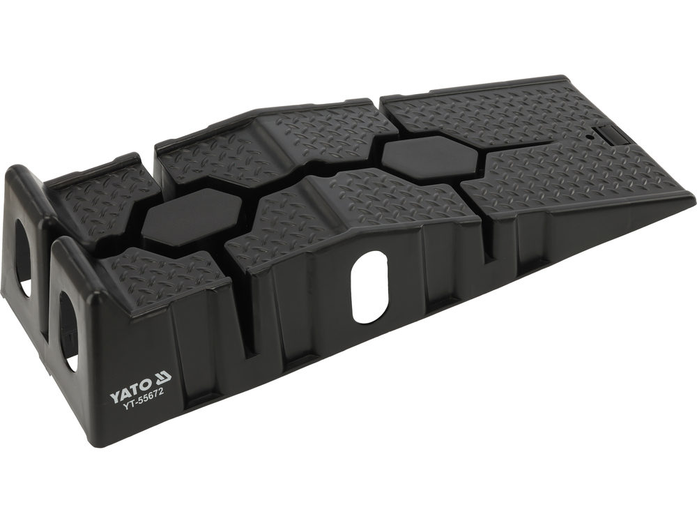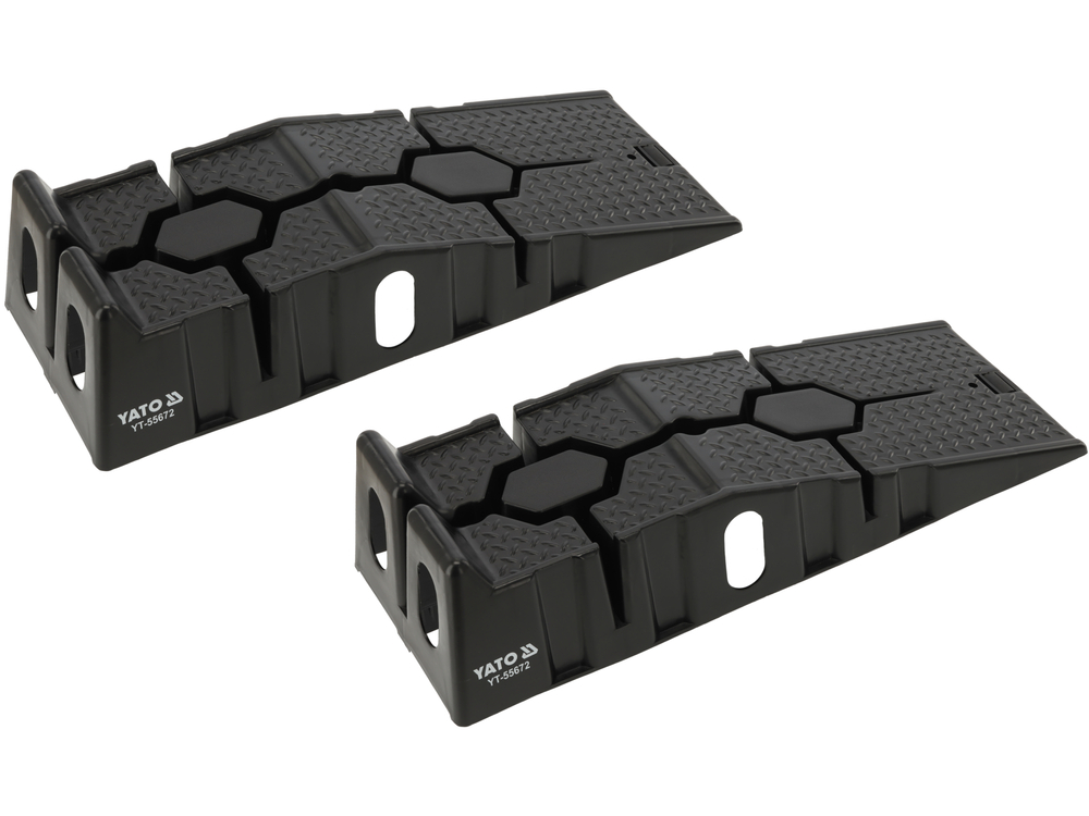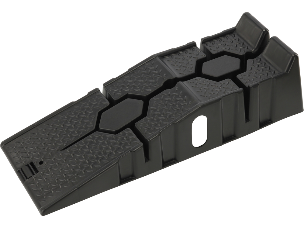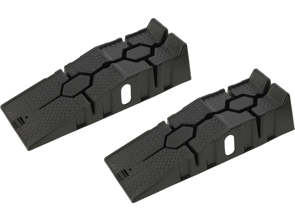 The car ramp set allows for the safe lifting of a vehicle to perform basic service work, undercarriage inspections, or maintenance tasks. The durable PP (polypropylene) construction ensures good load resistance and stability during wheel access. With compact dimensions, the ramps are easy to store and convenient to use in both private garages and small workshops.