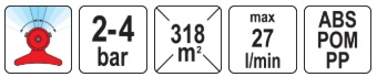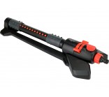 An oscillating sprinkler with adjustable range and watering angle, designed for watering various areas - from large gardens to narrow strips of lawn. Equipped with 19 durable spray nozzles - 11 fixed and 8 with a switch that allows for their selective choice. It enables flexible adjustment of watering to the needs of the lawn, garden layout, and terrain shape.