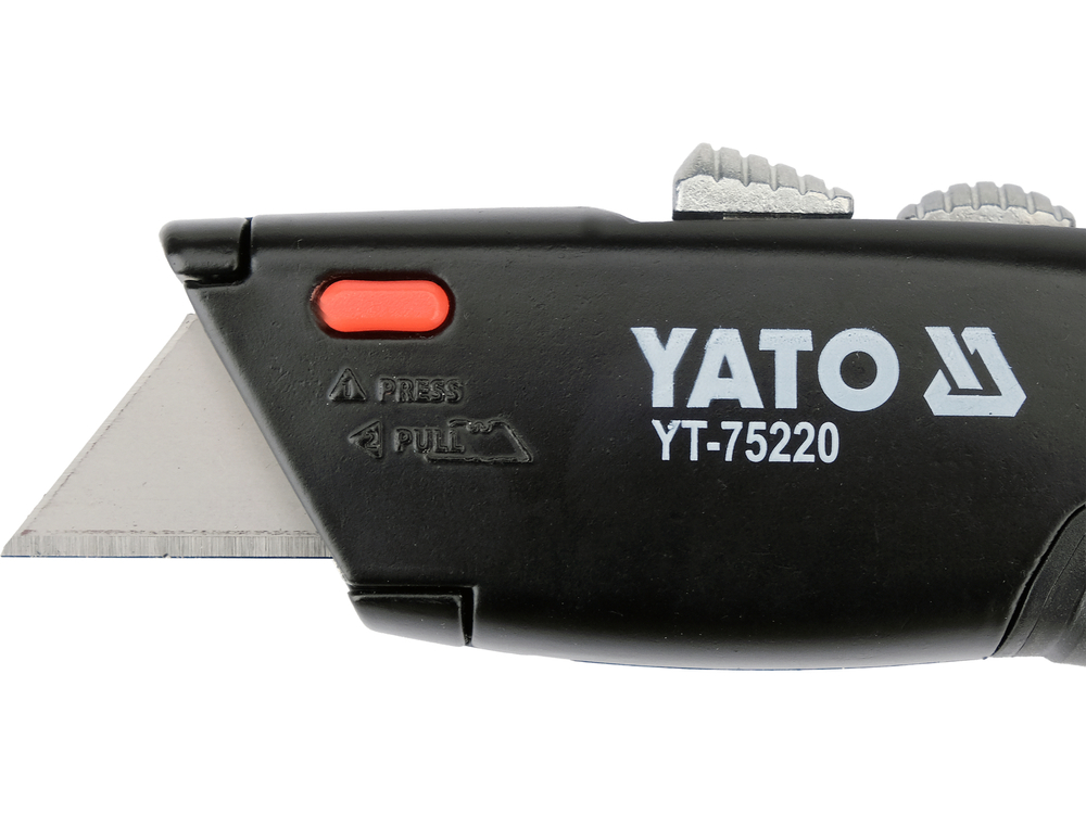 Double-blade knife designed for installation, warehouse, and finishing work, where both linear cutting and safe opening of packaging materials are required. The body made of aluminum and zinc alloy with ABS elements ensures the rigidity of the construction and a comfortable grip. The use of two types of blades allows you to adjust the tool to the type of material without the need to change equipment.