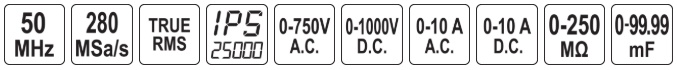 AC voltage measurement: A.C. 0-750V, TRUE RMS (40-1000Hz)