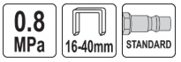 The pneumatic power supply with a maximum operating pressure of 0.8 MPa ensures constant driving force and high efficiency. The standard air connection and compatibility with a 3/8" (9.5 mm) hose make the tool easily compatible with most compressors available on the market.