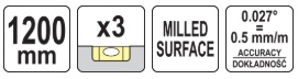 Алюминиевый уровень | 1200 мм | c рукояткой | 3-глазка (YT-30084)