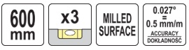 Алюминиевый уровень | 600 мм | с рукояткой | 3-глазка (YT-30081)