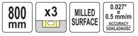 Алюминиевый уровень | 800 мм | c рукояткой | 3-глазка (YT-30082)