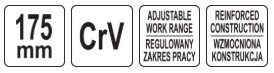 The reinforced, forged construction made of chrome-vanadium steel (CrV) ensures high resistance to loads and long tool life, while the blackened surface protects against corrosion and facilitates maintenance. The precise self-adjusting mechanism allows for immediate adjustment of the jaws to the diameter of the gripped element, without the need for time-consuming adjustment.