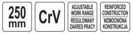 The reinforced, forged construction made of chrome-vanadium steel (CrV) ensures high resistance to loads and long tool life, while the blackened surface protects against corrosion and facilitates maintenance. The precise self-adjusting mechanism allows for immediate adjustment of the jaws to the diameter of the gripped element, without the need for time-consuming adjustment.