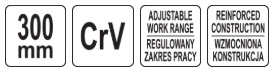 The reinforced, forged construction made of chrome-vanadium steel (CrV) ensures high resistance to loads and long tool life, while the blackened surface protects against corrosion and facilitates maintenance. The precise self-adjusting mechanism allows for immediate adjustment of the jaws to the diameter of the gripped element, without the need for time-consuming adjustment.