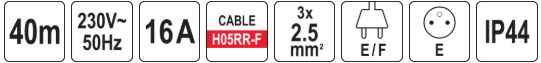 The cross-section of the single wires is as much as 2.5 mm², so the voltage drop along the entire length of the extension cord is minimal. This allows you to seamlessly power high-current demanding equipment such as inverter welders, compressors or large wood saws.