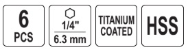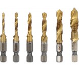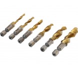 A set of 6 drills - tap drills made of high-speed steel HSS, which makes the drills exceptionally strong, durable, and resistant to wear, allowing work at high speeds. The surface coated with titanium nitride increases their hardness, resistance to wear, heat, and corrosion, and also reduces friction.