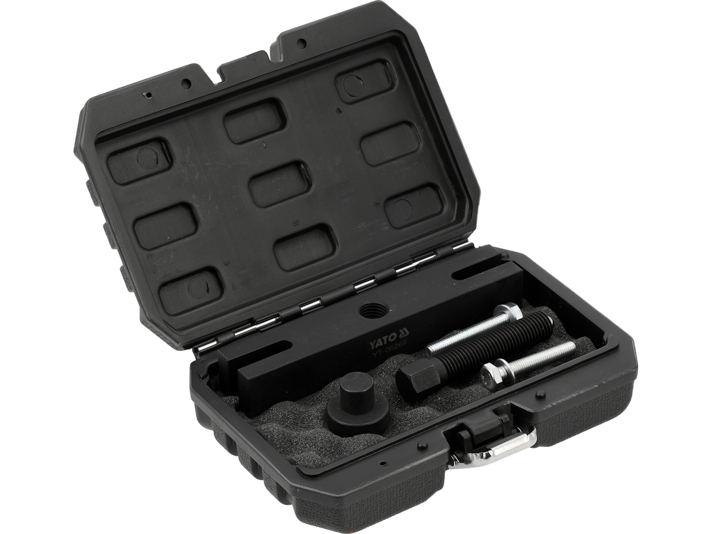 Precise fitting to the EcoBlue units' construction helps reduce the risk of damaging the crankshaft and related components. The puller serves as practical equipment for a workshop specializing in servicing modern Ford high-pressure units. It facilitates efficient repair execution and reduces timing work time.
