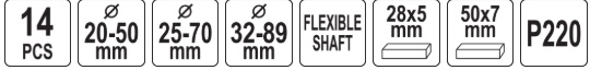 two-arm honing machine with stones (28x5mm P220), replacement set with 3 arms small, Interchangeable set with 3 medium arms, replacement stone x9 (28x5mm P220 x6, 50x7mm P220 x3),