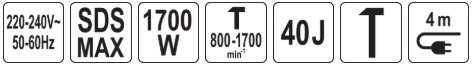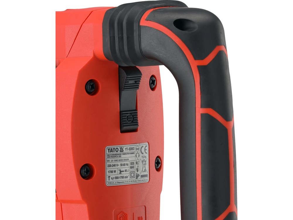 adjustable impact frequency in the range of 800-1700 min⁻¹ allows to adapt the power to different materials - concrete, brick, reinforced concrete, silicate