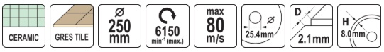Алмазный диск для мокрой резки | для керамики | 250 мм (YT-59956)