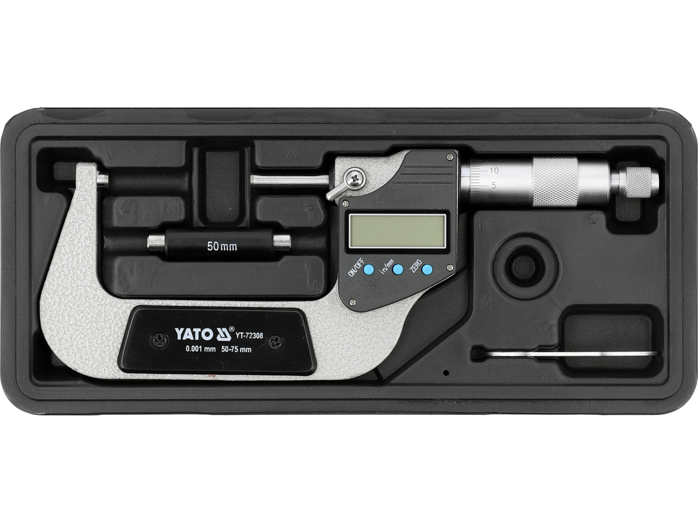 The digital external micrometer (Type A) is a high-class measuring tool designed for accurately determining the external dimensions of elements with small tolerances. It is used in mechanical workshops, measurement laboratories, and quality control, where the highest precision and repeatability of results are required. Ideal for professionals who value accuracy, reliability, and ease of use in daily work.