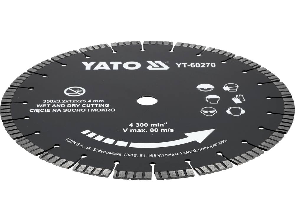 Diamond blade designed for working on dry and wet hardened and reinforced concrete, brick, granite, wall, stone, sandstone.