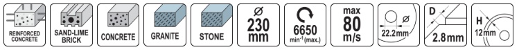 Diamond blade for precise cutting of hardened concrete, brick, granite, wall, stone, sandstone, both dry and wet.